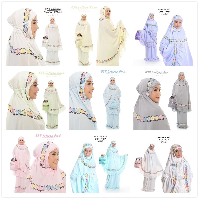 Promo DiskonMukena Bsy Lolipop - Bahan Bi Shrinkage yarn Sangat Lembut Dan Adem Motif Cantik sayang jika tidak dibeli