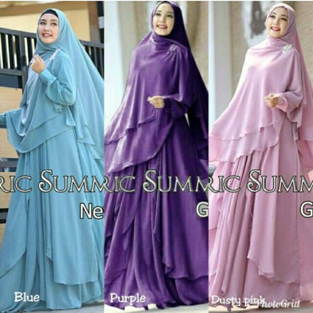 Penawaran Menarik Baju pakaian gamis sya'i murah motif polos cantik warna biru, ungu, dusty pink ukuran jumbo ceruty ayo segera dibeli