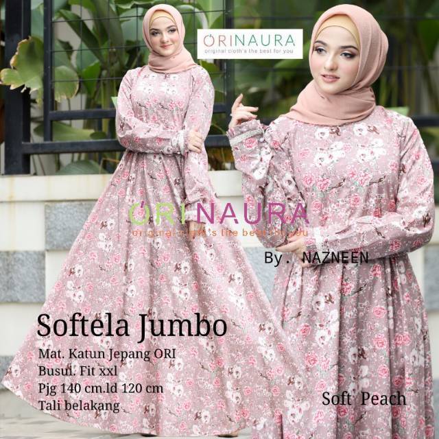 Promo MenarikSOFTELA JUMBO dressgamis jumbo xxl ld 120 original gamis katun jepang motif bunga cantik ori NAURA sebaiknya dibeli