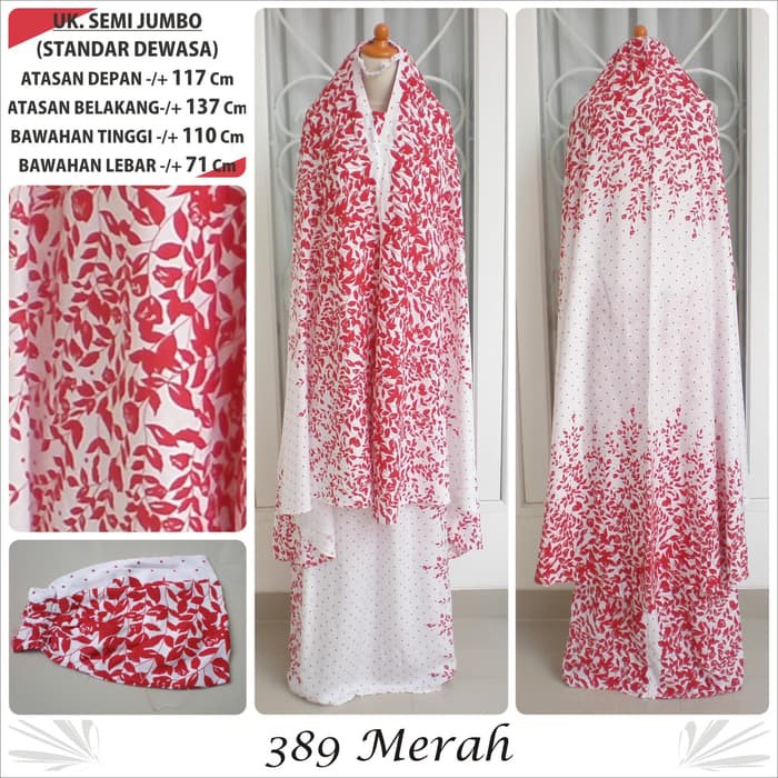 Promo MenarikPromo Mukena bali katun rayon motif daun merah 389 dasar putih semi jumbo sebaiknya diambil